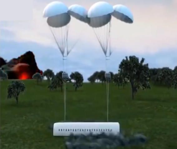 El contenedor, a su vez, llevaría incorporado un sistema de paracaídas para hacer el impacto contra la superficie mucho menor.