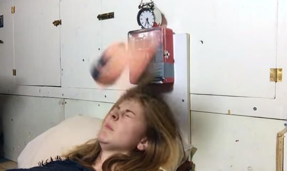 Simone Giertz ha tenido una idea absurda aunque divertida, y es que ha unido varios conceptos para inventar un despertador que activa una mano para despertarte literalmente a tortazos. Aunque aún le falta mejorar el diseño, creo que la idea se capta perfectamente.